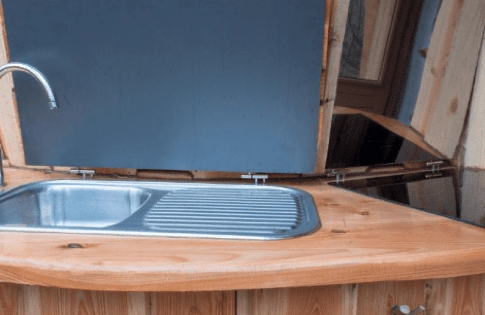 - Buiten keuken met elektrische kookplaat en spoelbak.