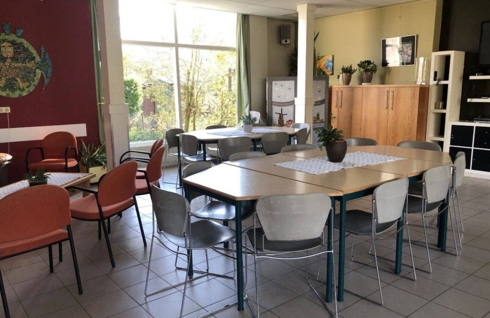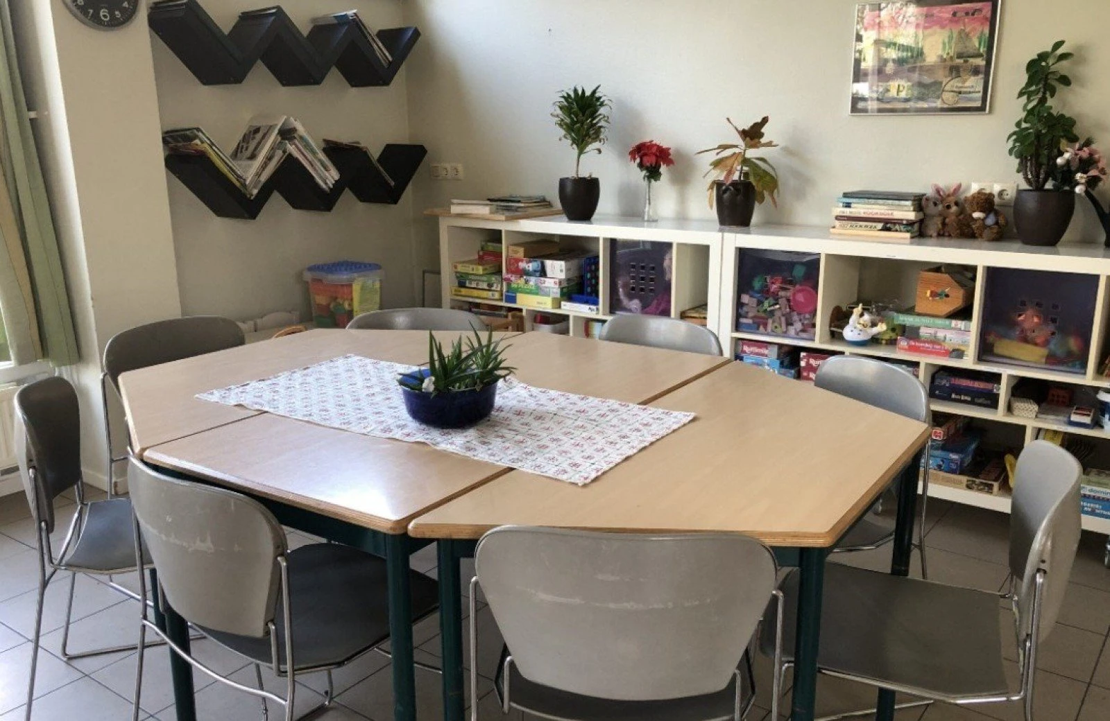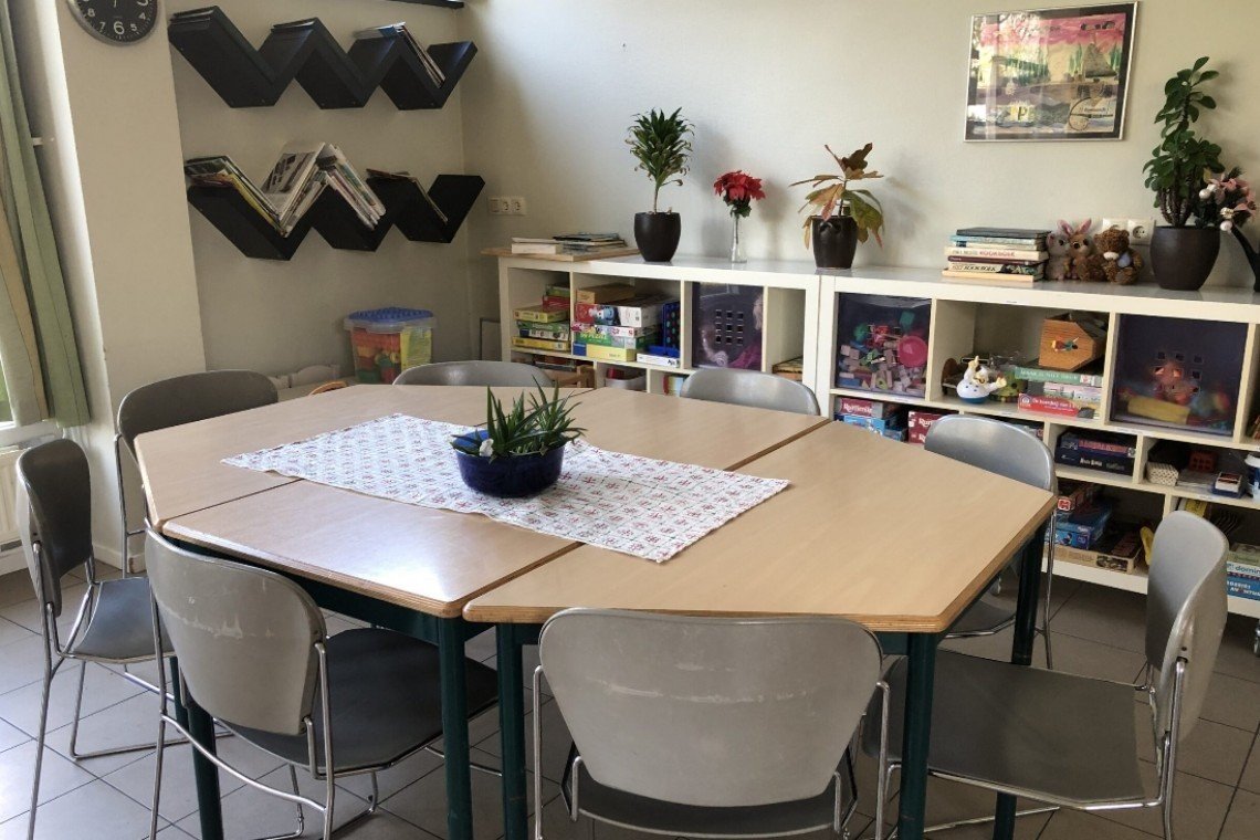 Een gezamelijke woonkamer , spelletjes- en leeshoek. Ook buiten is voldoende ruimte om samen of alleen te ontspannen.