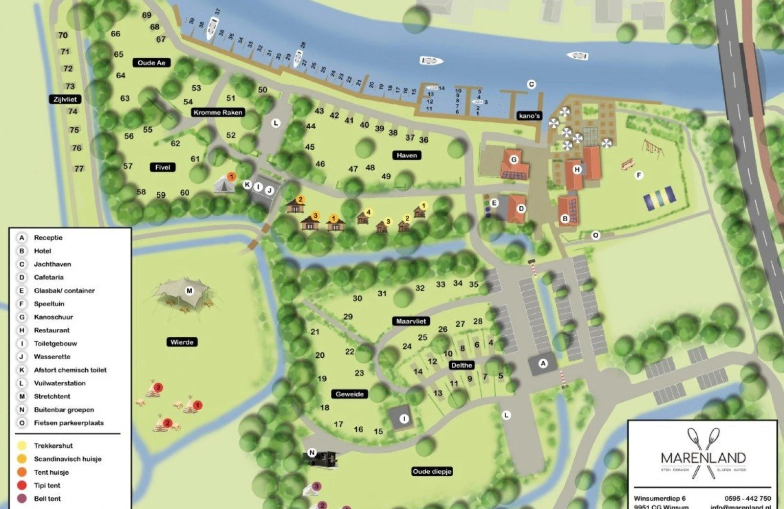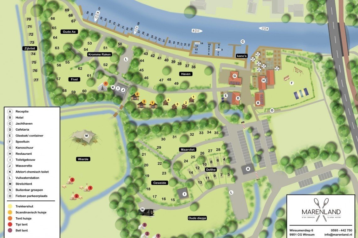 Bij Marenland kun je van alles doen en is er voor iedereen wat te beleven. Zo is er op de camping een groot zwembad, een prachtige jachthaven, boot en kanoverhuur. Verder is er een groot terras aan het water met een speeltuin waar je kunt genieten van een hapje en een drankje. Daarnaast heeft Winsum en omgeving veel moois te bieden!