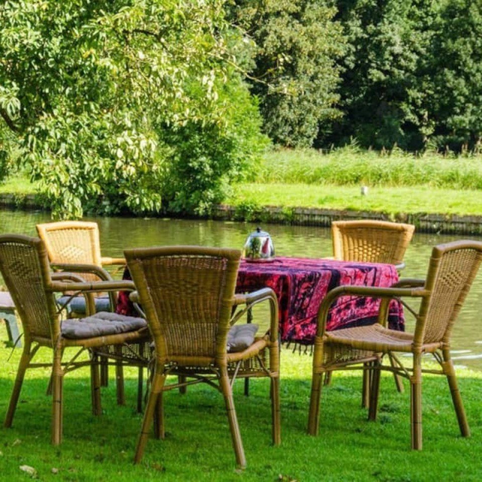 Uniek theehuis direct aan de historische rivier de Vecht. Het huis ligt direct aan het water, dus het is belangrijk om voorzichtig te zijn met kinderen die nog niet kunnen zwemmen. Er zijn twee zwemvesten beschikbaar om te lenen. De trappen in het huis zijn redelijk steil.