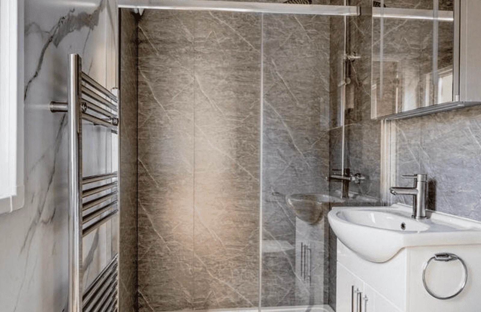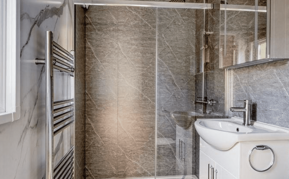 - Badkamer met douche, toilet